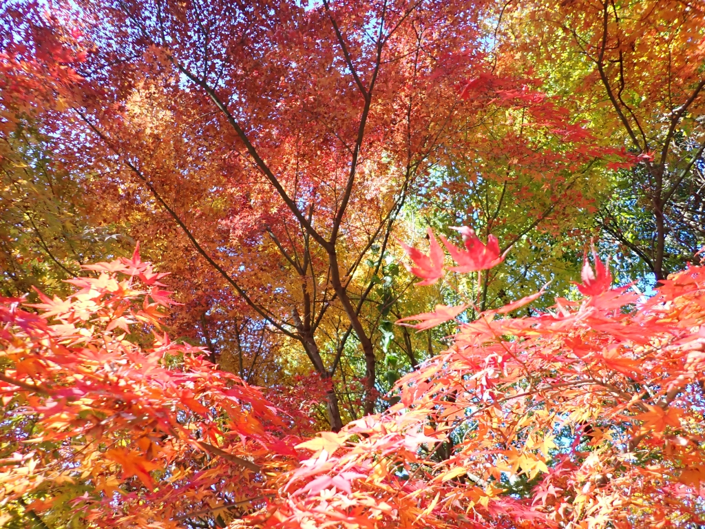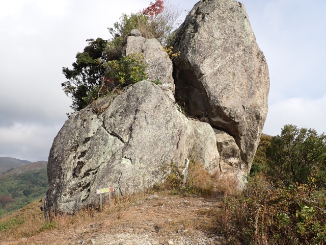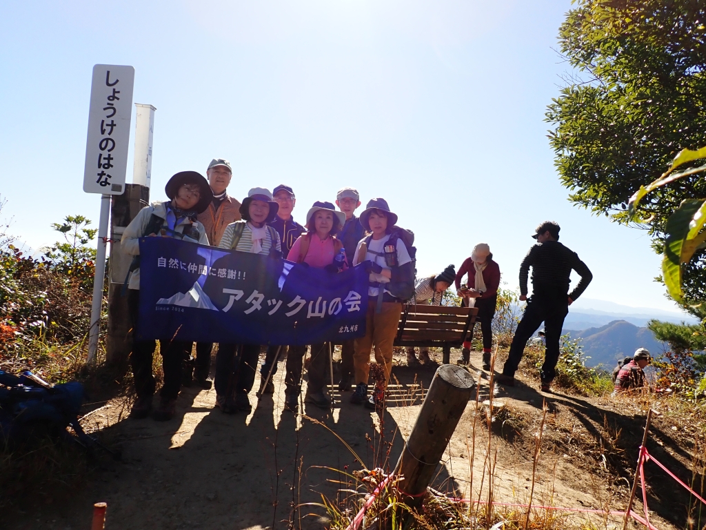 高速道のおかげで八面山はとても近くなった。その分、のんびりと山を歩ける。八面山はテーブル状のメサ台地だ。玖珠の万年山と同じで登山口から登り切るとほぼ平坦な道となる。今回は修験の滝に立ち寄る。その名の通り結構厳しい道だ。登りきると青空に陽射しを浴びた木々(楓)の紅葉が目に入る。大展望の北峰に立ち寄り、再び森の中、登山道は緩やかな坂道となる。展望所が第5から始まり第4、第3と続く。最高の天候なので最高に展望を楽しめる。山頂はショウケの鼻と名が付いている。ここで昼食の予定だったが満員御礼なので少し先の巨石群で展望を楽しみながらランチタイムを過ごす。昼食を終え、小池まで戻り往路を下山する。時間をたっぷりとかけた山行、少人数の参加だったが和気あいあいと過ごせた気がする。(清水)